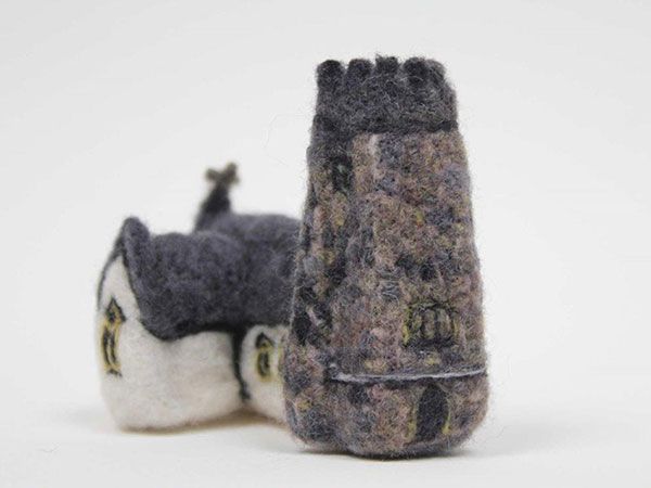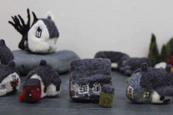 The wool fibre used is all sourced from the Cambrian Mountains and the needle felted buildings are all based on buildings in Ceredigion.